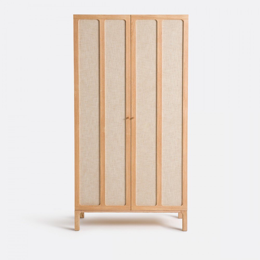 Regina - Armario estilo clásico con madera de encino y tela tono natural con 2 puertas