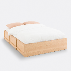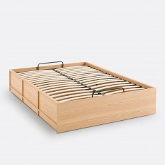 Blas - Cama king estilo moderno con almacenamiento elevable en madera de encino