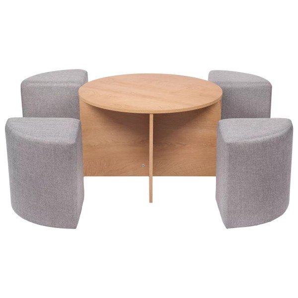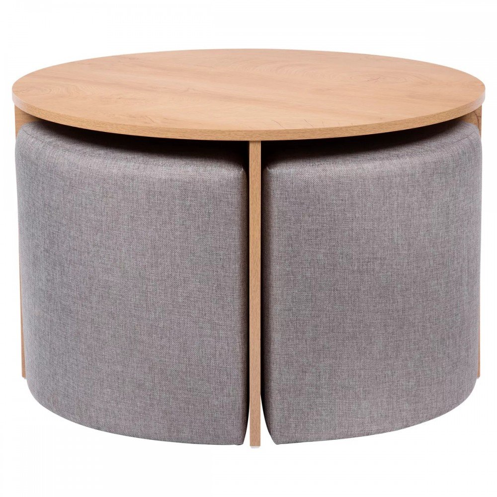 Shanti - Mesa de centro estilo moderno con 4 puffs color gris claro