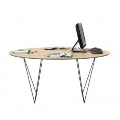 Madera chapa de encino con barniz tono roble. Herrería pintada en color negro. Los tonos pueden variar según ajustes de tu equipo o monitor.