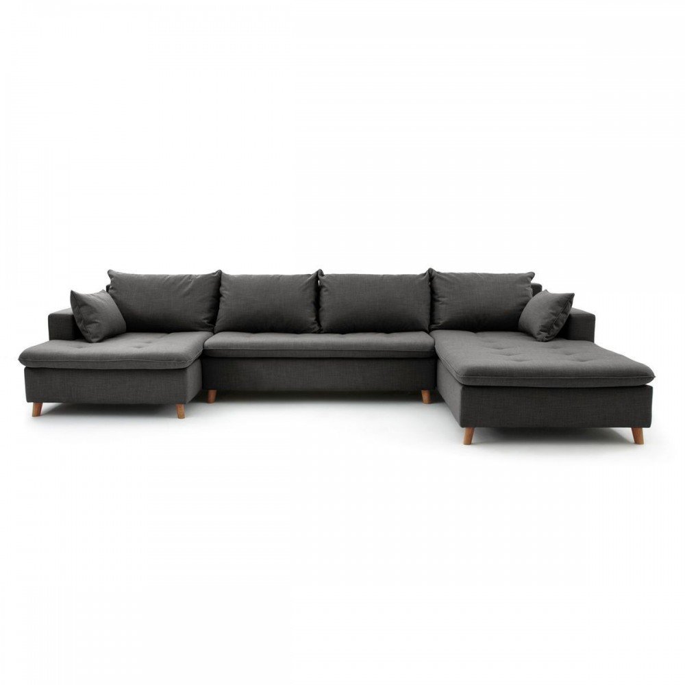 California - Sofa panoramico estilo moderno tela color gris oscuro