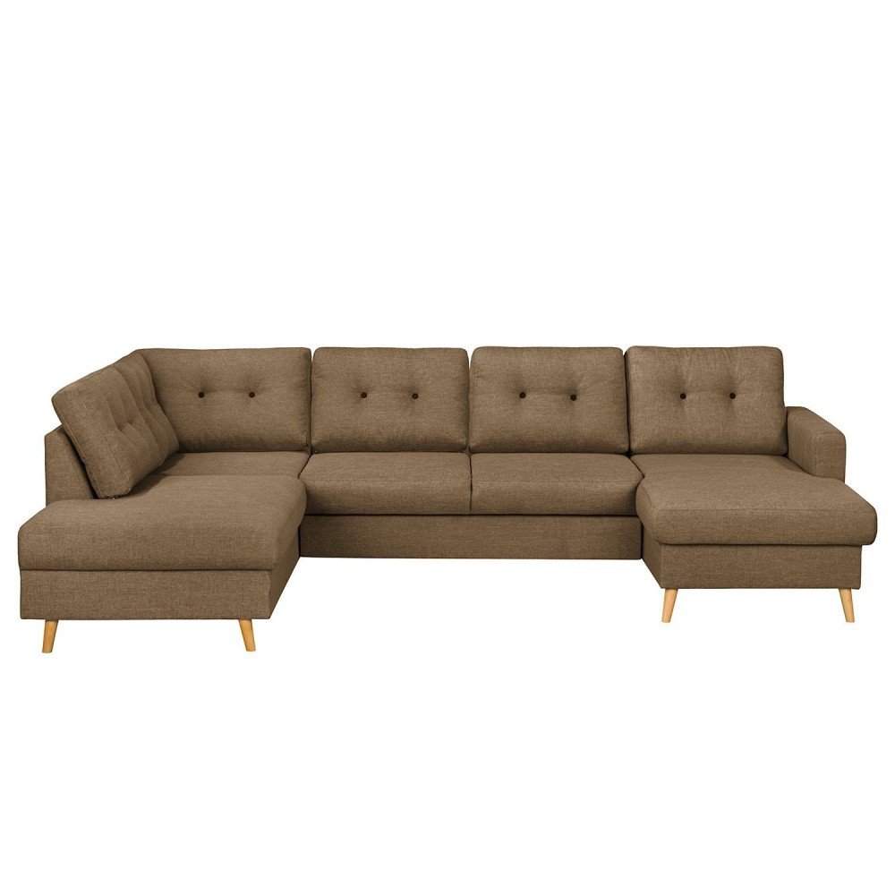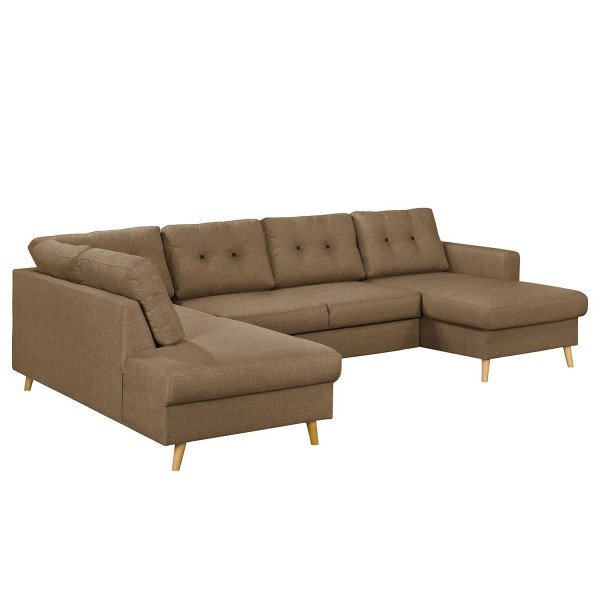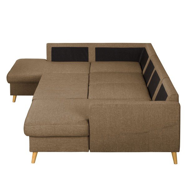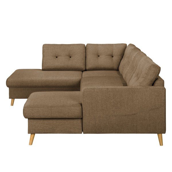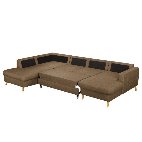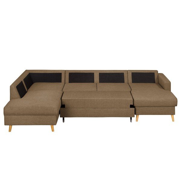 Dual - Sofacama panorámico estilo escandinavo con tela capuccino y botones café
