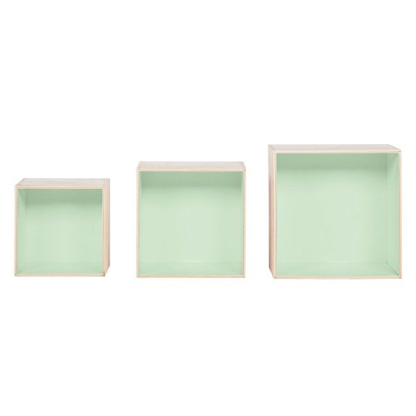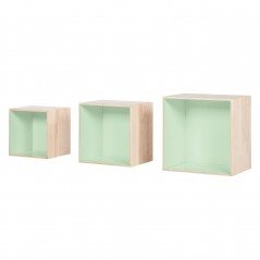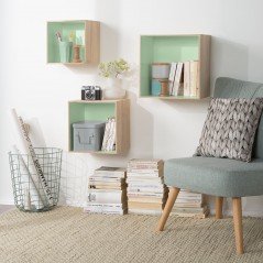 Mika - Juego de 3 repisas cuadrada madera natural y verde menta