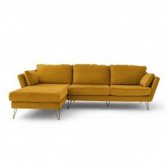 Duque - Sofá esquinero estilo moderno pies de horquilla dorada - terciopelo color mostaza