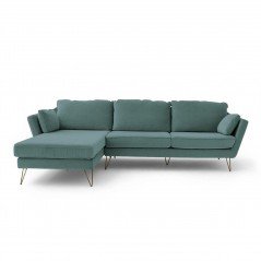 Duque - Sofá esquinero estilo moderno pies de horquilla dorada - terciopelo color verde bali