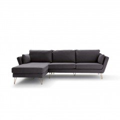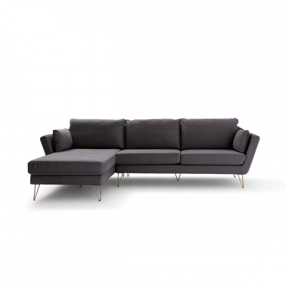 Duque - Sofá esquinero estilo moderno pies de horquilla dorada - tela color gris oscuro