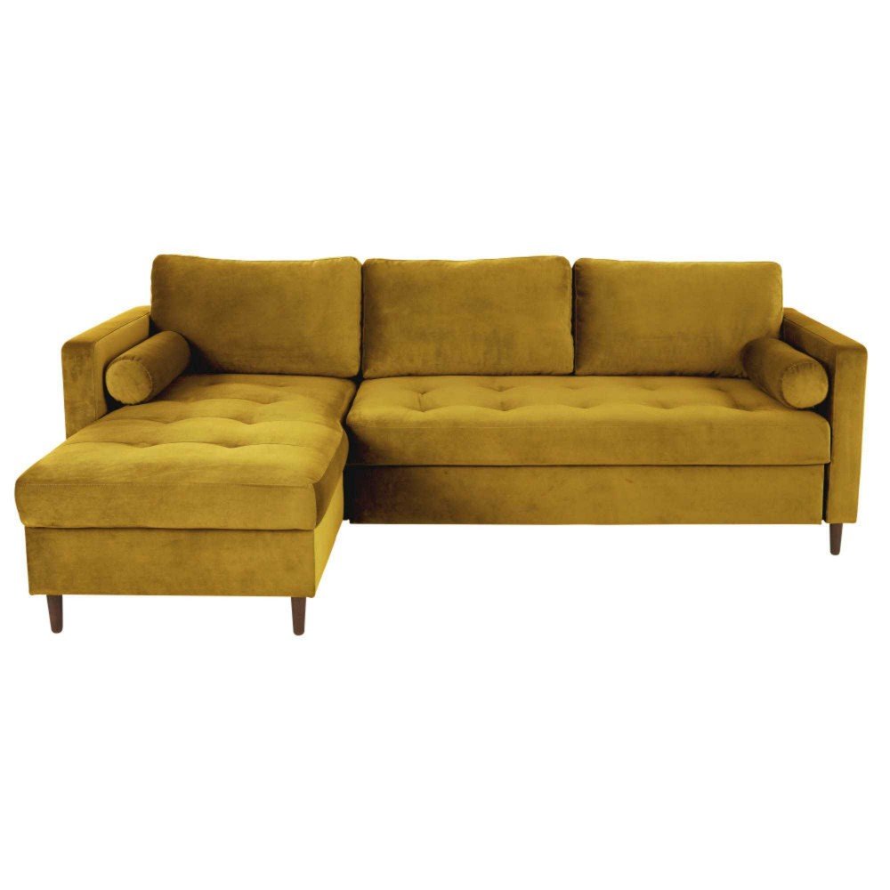 Monarca - Sofacama esquinero estilo moderno en terciopelo color mostaza