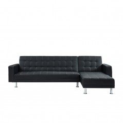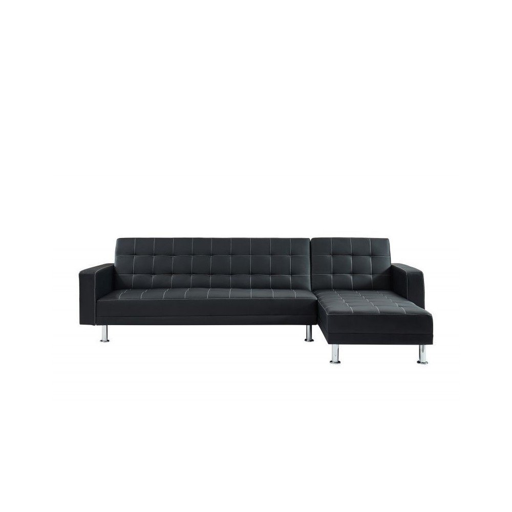 London - Sofa esquinero convertible cama estilo moderno con vinipiel negro y costuras blancas