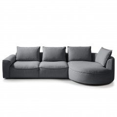 Arcona - Sofá esquinero estilo moderno con casco redondeado tela color gris oscuro