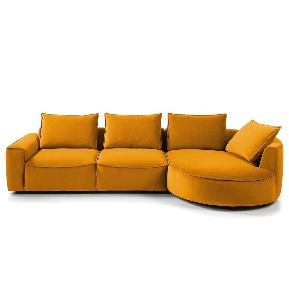 Arcona - Sofá esquinero estilo moderno con casco redondeado terciopelo mostaza
