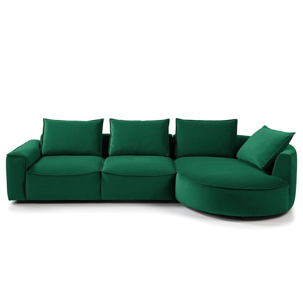 Arcona - Sofá esquinero estilo moderno con casco redondeado terciopelo verde