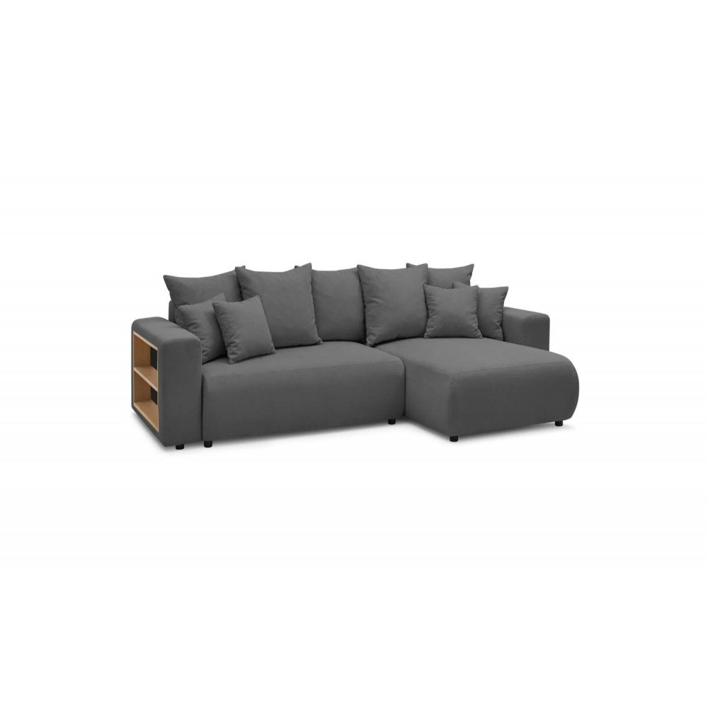 Larsen - Sofacama esquinero estilo moderno con repisero tela color gris oscuro