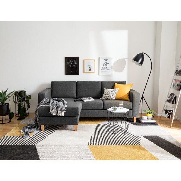 Garen L - Sofá esquinero estilo minimalista color gris oscuro