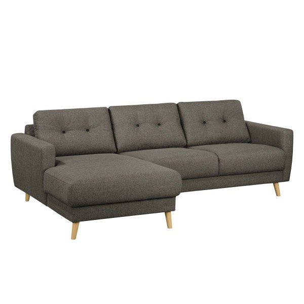 Dual - Sofacama esquinero estilo escandinavo con tela gris oscuro y botones negro
