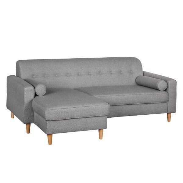 Viena - Sofá esquinero estilo escandinavo en tela gris mouse