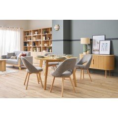 Chloe - Silla estilo moderno base de madera y tela color gris claro
