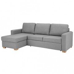 El sofacama esquinero es de estilo moderno, ese estilo que pone a todos de acuerdo con sus lineas y sus pies de madera de pino natural. Si además le agregas un cajón de almacenamiento en su chaise longue y una cama tipo cajón mecánico: es un 10! (cama de 140x190cm)