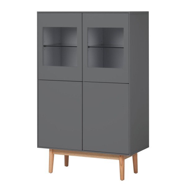 Splendid S - Vitrina estilo minimalista en color gris oscuro 2 puertas y 8 repisas